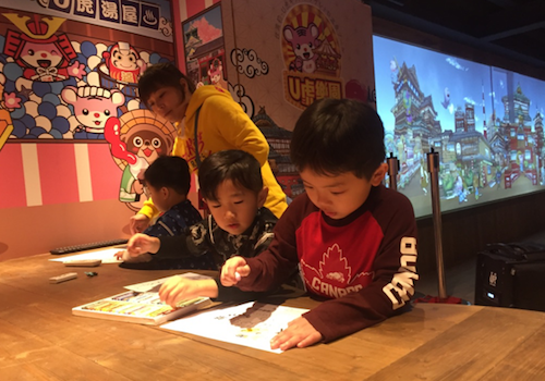Feature: 結合小朋友最愛的著色以及體感互動。小朋友在圖畫紙上幫喜愛的角色塗上顏色,經過掃描後,小朋友所畫的角色會轉為3D角色出現在投影牆面上。除了看到自己的著色的角色在牆面上蹦蹦跳跳地之外,對著角色揮揮手,就可以看到角色的特殊技能喔!