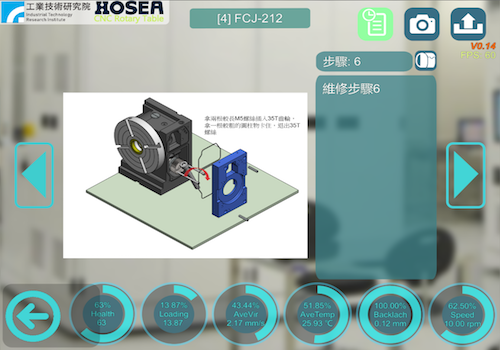Feature: 透過AR技術辨識出工廠機臺上的型號,並透過伺服器串接取得機台即時的運轉訊息,遇到機台顯示故障時,可透過APP即時確認以及幫助故障排除,幫助工廠機台日常維護作業。